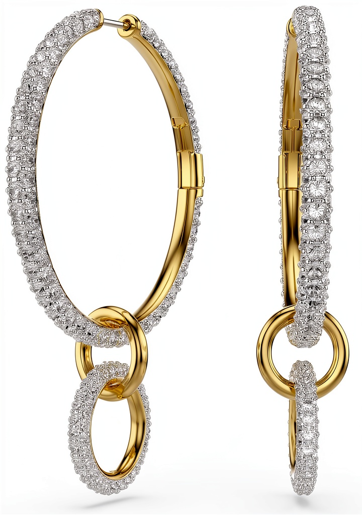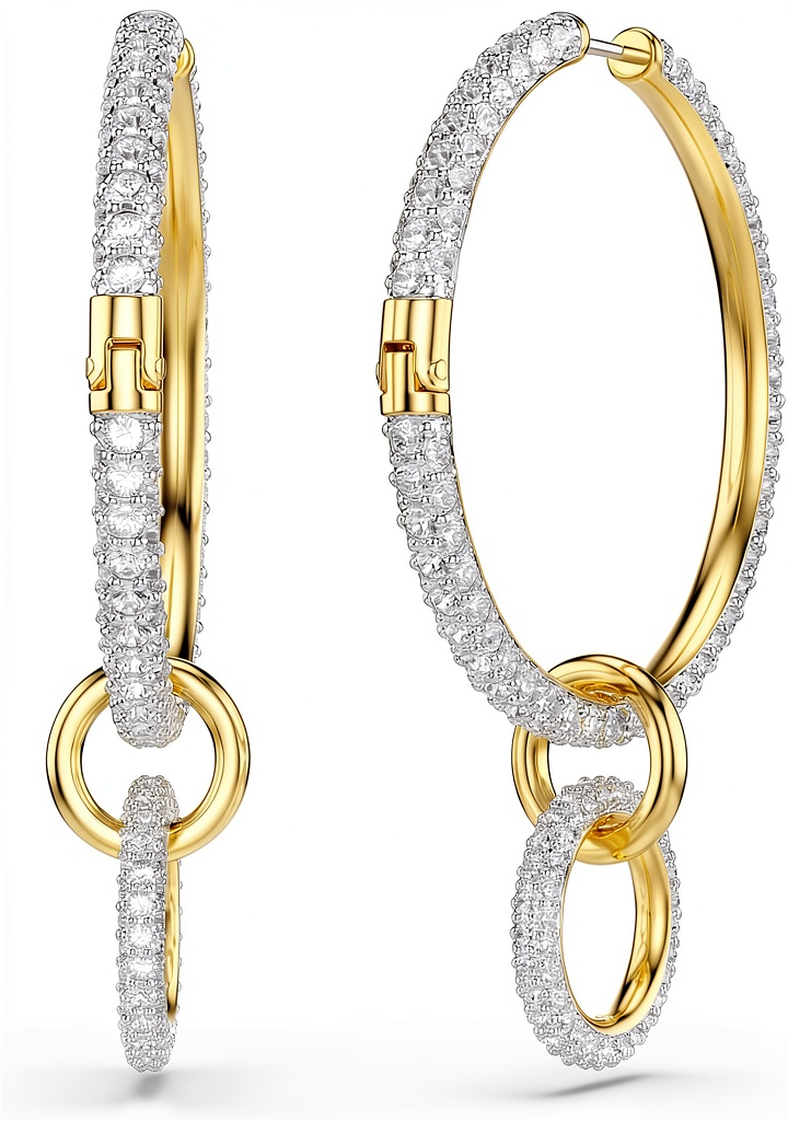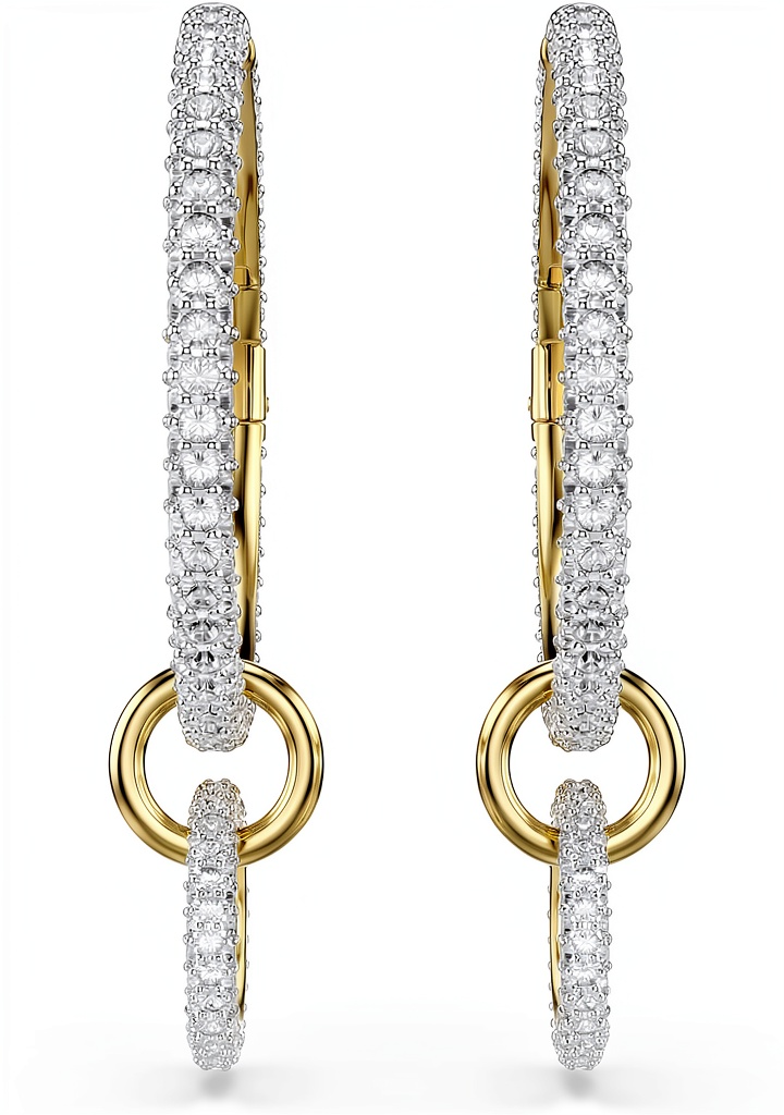 Aggiungi un tocco di brillantezza ai tuoi outfit quotidiani con gli orecchini a cerchio Swarovski Dextera. Realizzati con tre anelli interconnessi placcati oro e cristalli radianti, offrono un design sofisticato e versatile. La sezione pendente rimovibile ti permette di adattarli facilmente a diverse occasioni, dal lavoro alle serate speciali.