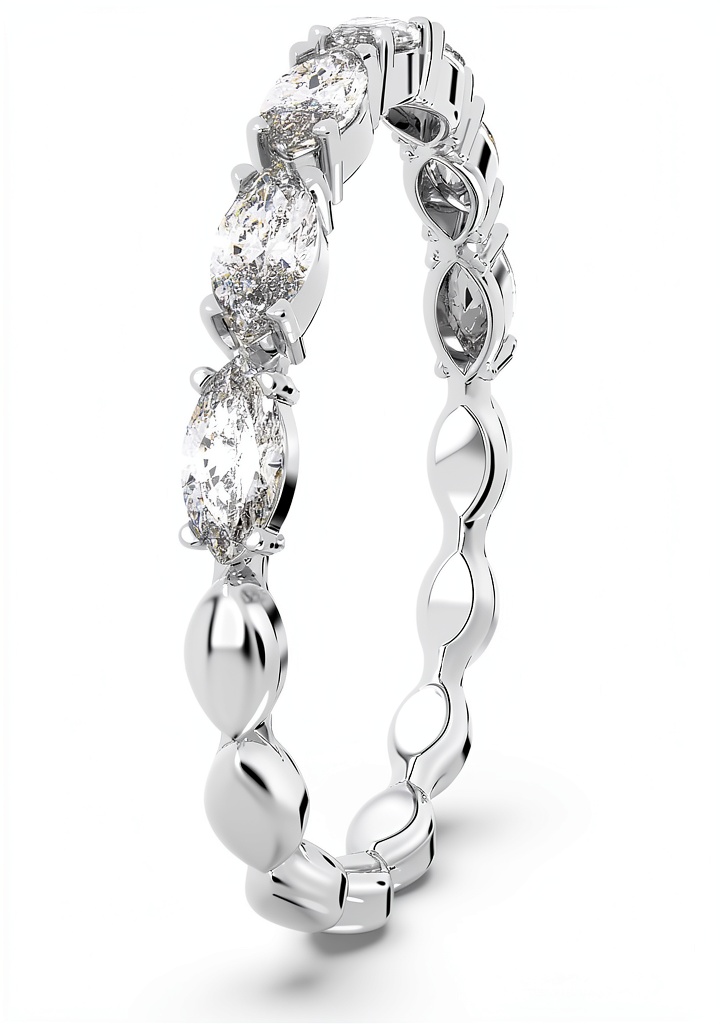 L’anello Swarovski Matrix Vittore è un gioiello che bilancia minimalismo e lusso, realizzato con placcatura rodiata in bianco e decorato con pietre dal taglio marquise sulla metà anteriore. Questo design sofisticato offre un aspetto scintillante senza essere eccessivo, rendendolo adatto per un uso quotidiano. Le specifiche includono una finitura durevole, materiali di alta qualità e disponibilità in diverse taglie per garantire una vestibilità perfetta. Prodotto da Swarovski, noto per la sua maestria nella creazione di cristalli e gioielli, questo anello combina artigianalità e stile contemporaneo.