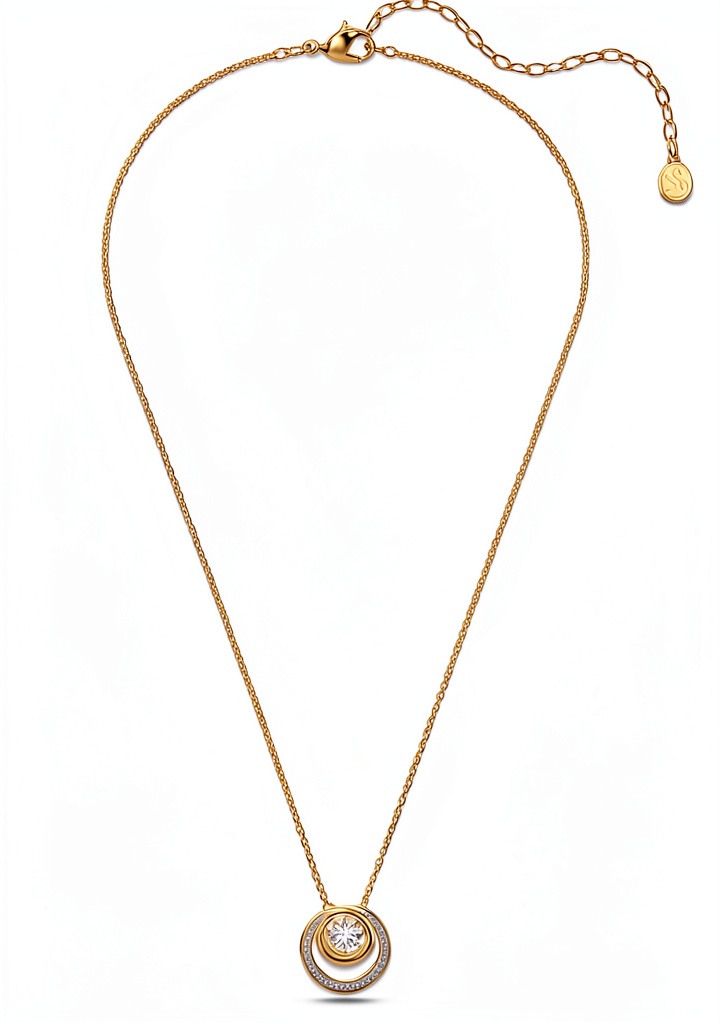 La collana è realizzata con placcatura in oro e cristalli Swarovski autentici, garantendo resistenza e una lucentezza eccezionale nel tempo.