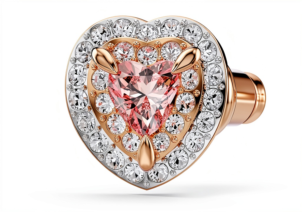 - Design a cuore con zirconia rosa per un look romantico e raffinato