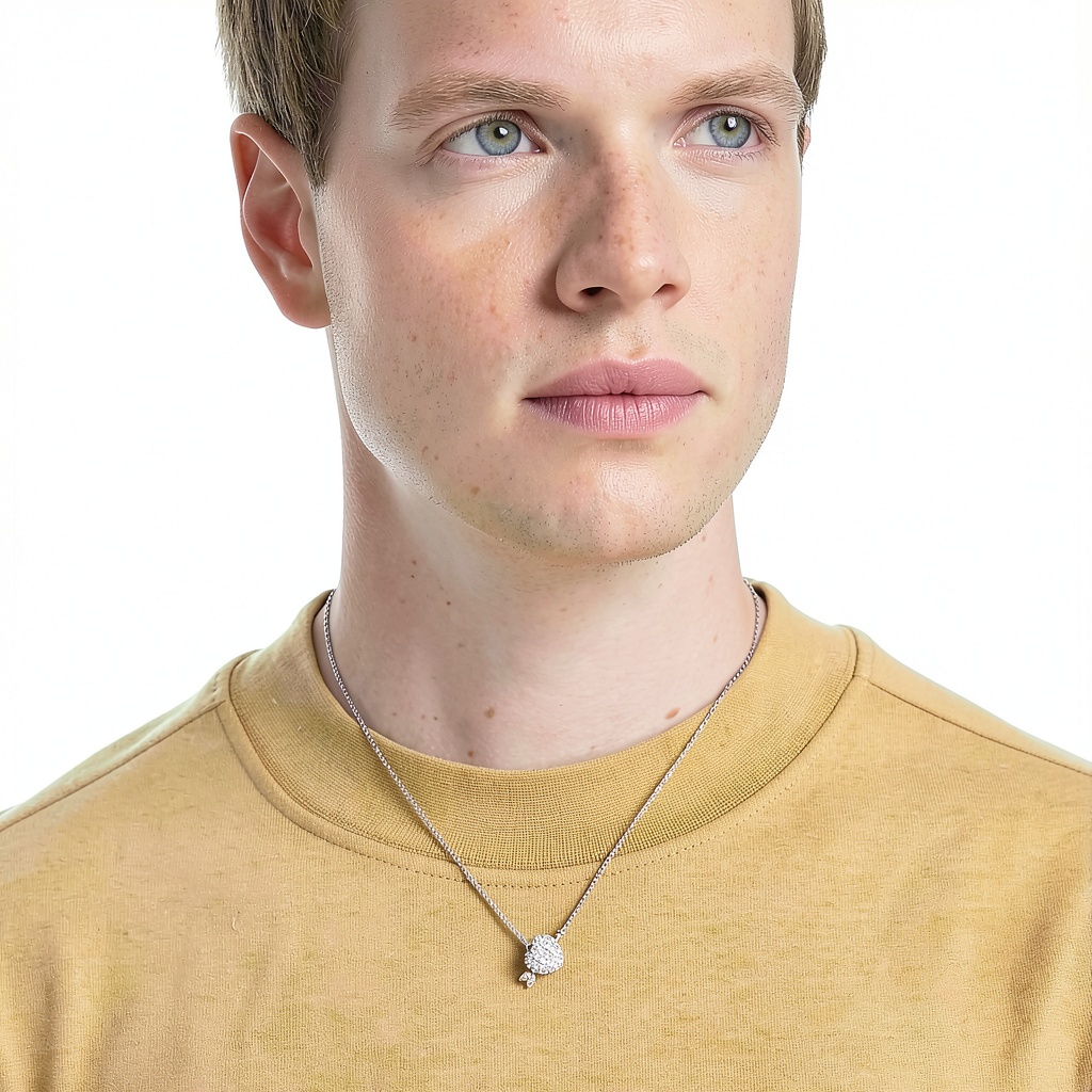 Il pendente misura 6,9 x 6,8 x 2,7 cm, con un peso di 6,1 grammi, ideale per un portamento leggero e discreto.
