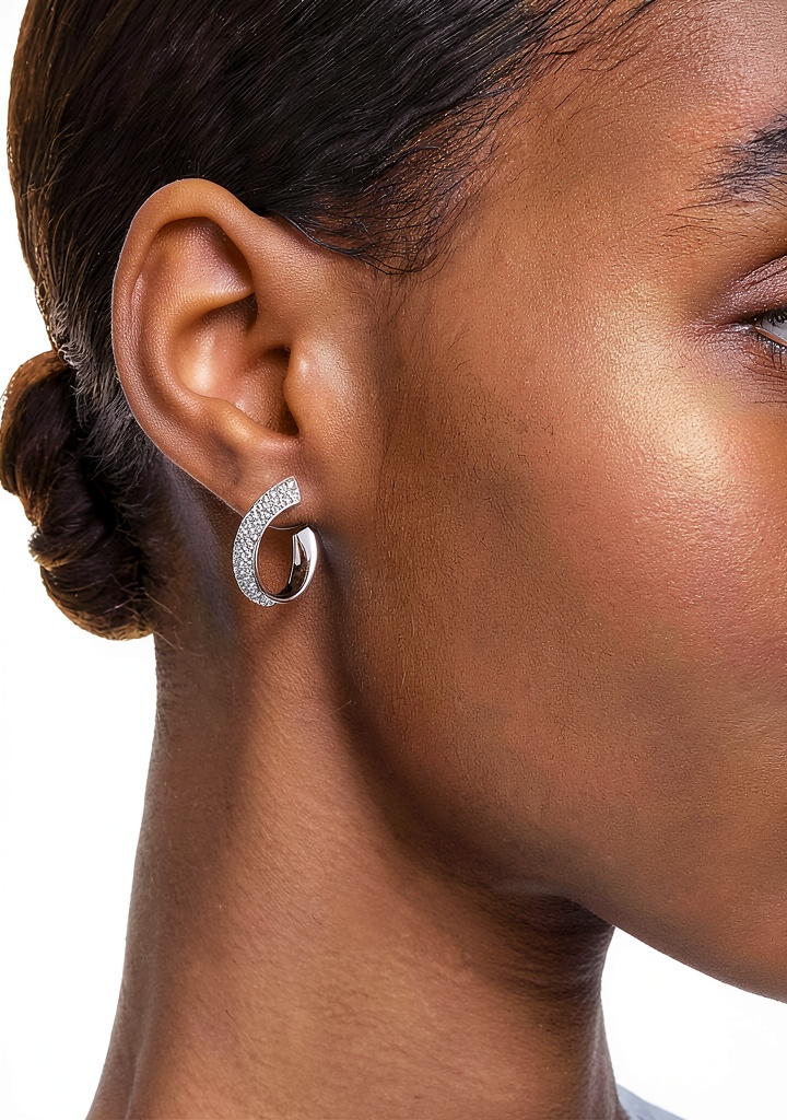 Gli orecchini Swarovski Exist Collezione rappresentano l’eccellenza nel design di gioielli, caratterizzati da un profilo esclusivo fronte-retro che abbraccia il lobo dell’orecchio con un modello a nastro. Realizzati con placcatura in rodio bianco o oro rosa, questi cerchi sono impreziositi da un pavé di cristalli cry, offrendo brillantezza e resistenza nel tempo. Disponibili in taglie Small, Medium e One Size, garantiscono una vestibilità personalizzata e comfort ottimale per un uso prolungato. I materiali di alta qualità e la cura dei dettagli riflettono il know-how di Swarovski, assicurando un prodotto durevole e raffinato.