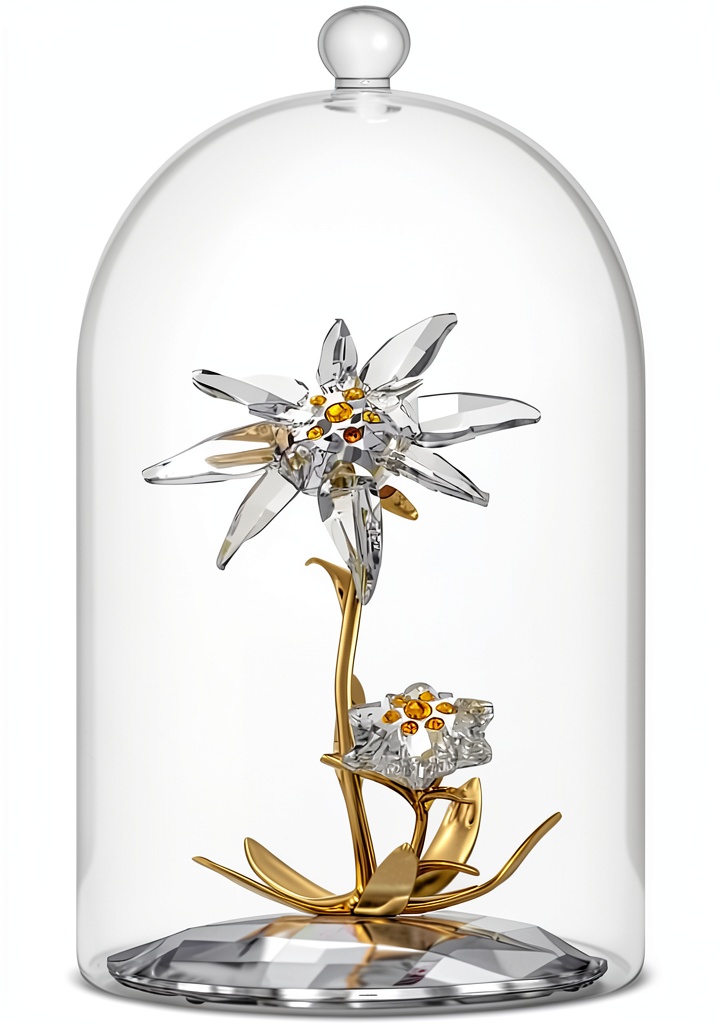 - Campana di vetro con stella alpina in cristallo Swarovski a 259 sfaccettature