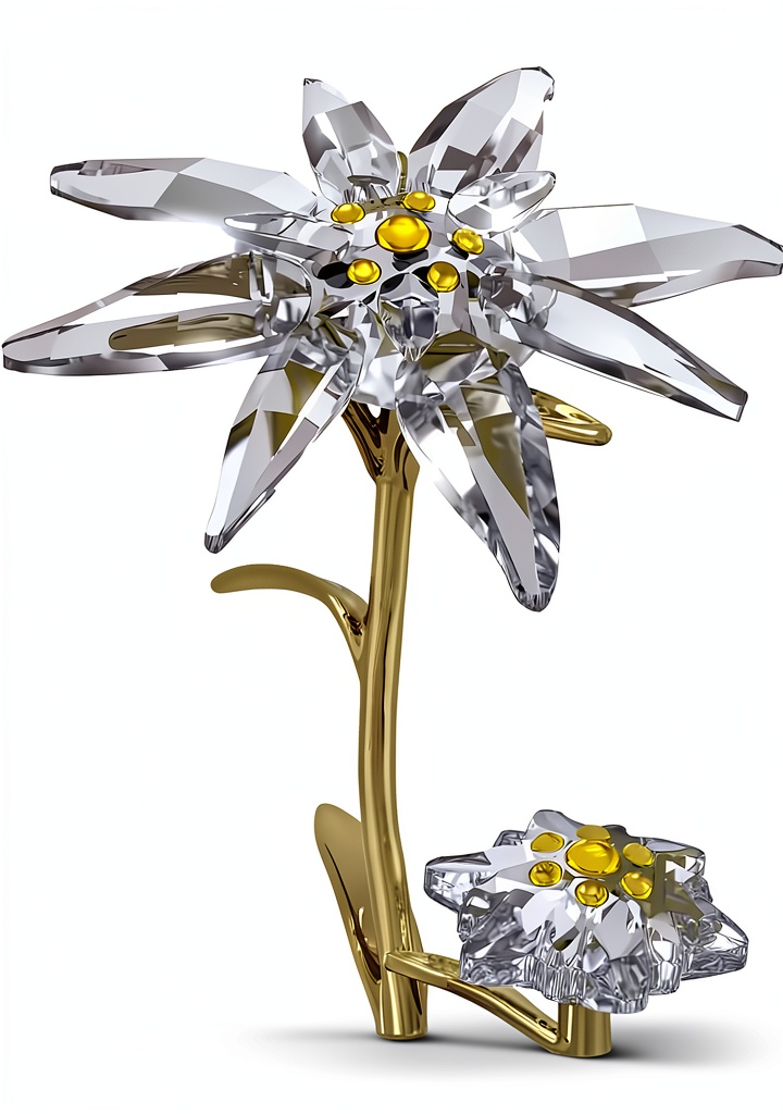 La Swarovski Florere Campana di Vetro con Stella Alpina è una decorazione esclusiva creata per il 130° anniversario del brand, disegnata da Edith Mair. Misura 7,1 x 5,5 x 5,5 cm e presenta una campana di vetro che protegge un intricato fiore di stella alpina, composto da 259 sfaccettature di cristalli Swarovski con pistilli gialli e parti metalliche placcate in tonalità oro champagne. Rifinisce interni con un tocco di purezza e artigianalità, ideale per collezionisti e amanti del lusso.