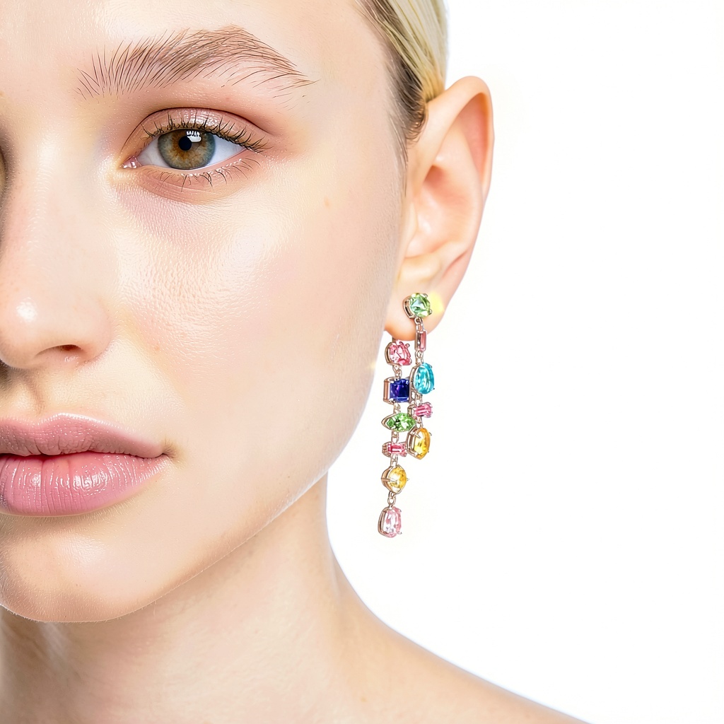 Questi orecchini sono perfetti per occasioni speciali come cene, eventi serali o feste, aggiungendo un tocco di lusso al tuo abbigliamento. Adatti per donne che amano uno stile allegro e sofisticato, possono essere indossati per completare look casual-chic o più formali. Abbinali a collane o bracciali della famiglia Gema per un coordinamento armonioso, enfatizzando la moltitudine di cristalli che catturano la luce in modo unico.