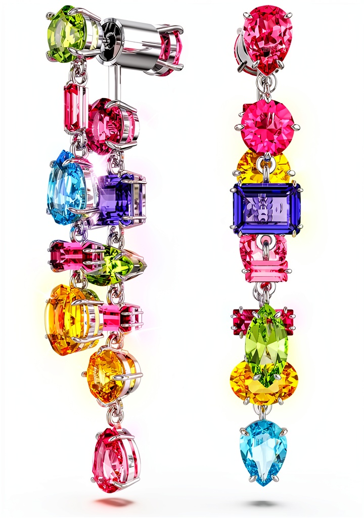 Gli orecchini pendenti Swarovski Gema rappresentano l’essenza della vivacità e diversità della collezione, con due fili asimmetrici impreziositi da un mix di tagli di pietre colorate. Realizzati con cristalli di alta qualità incastonati su una montatura placcata rodio, offrono un design unico e duraturo. Specifiche tecniche: disponibile in colore multicolore e dimensione Gema orecchini pendenti L, prezzo di 119,00 €. Prodotto da Swarovski, garantisce autenticità e finiture impeccabili, ideale per chi cerca gioielli raffinati.