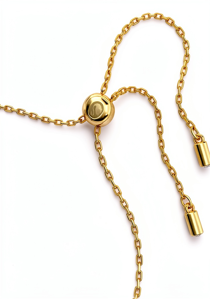 Si consiglia di evitare il contatto prolungato con acqua, sudore o prodotti chimici per preservare la placcatura oro e i cristalli. Rimuoverlo durante attività come nuoto o doccia è raccomandato.