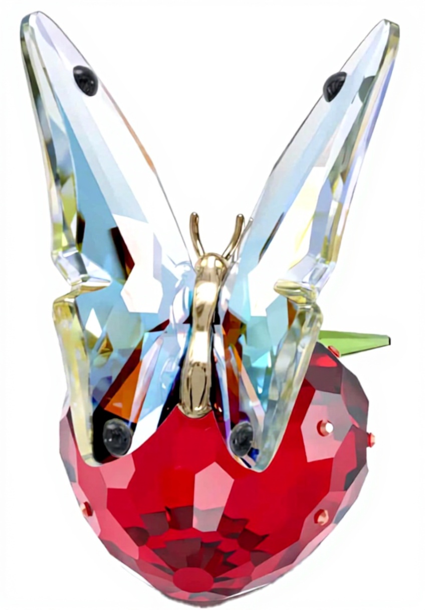 La decorazione Swarovski Idyllia Farfalla e Fragola è un’opera d’arte che incanta con la sua scena naturale: una farfalla delicata si posa su una fragola matura, simboleggiando un attimo di tranquillità. Realizzata con cristallo di alta qualità, presenta 461 sfaccettature che catturano la luce, esaltando ogni dettaglio. I colori vivaci e le finiture in metallo laccato donano un tocco di brillantezza e raffinatezza. Con dimensioni di 4,27 x 2,98 x 5,05 cm e un peso di 32,5 grammi, questa decorazione è pronta per essere esposta senza necessità di assemblaggio, ideale per ambienti interni.