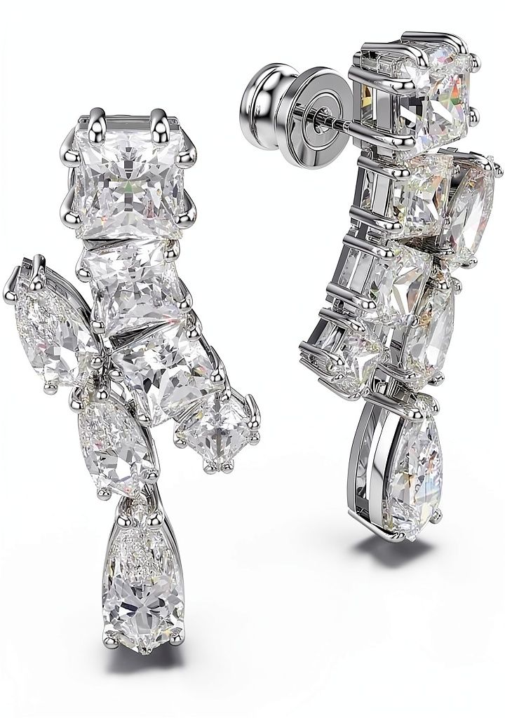 Gli orecchini Swarovski Matrix sono disponibili in due varianti: orecchini pendenti e orecchini a clip, entrambi con placcatura rodio e zirconia, senza ulteriori opzioni di colore.