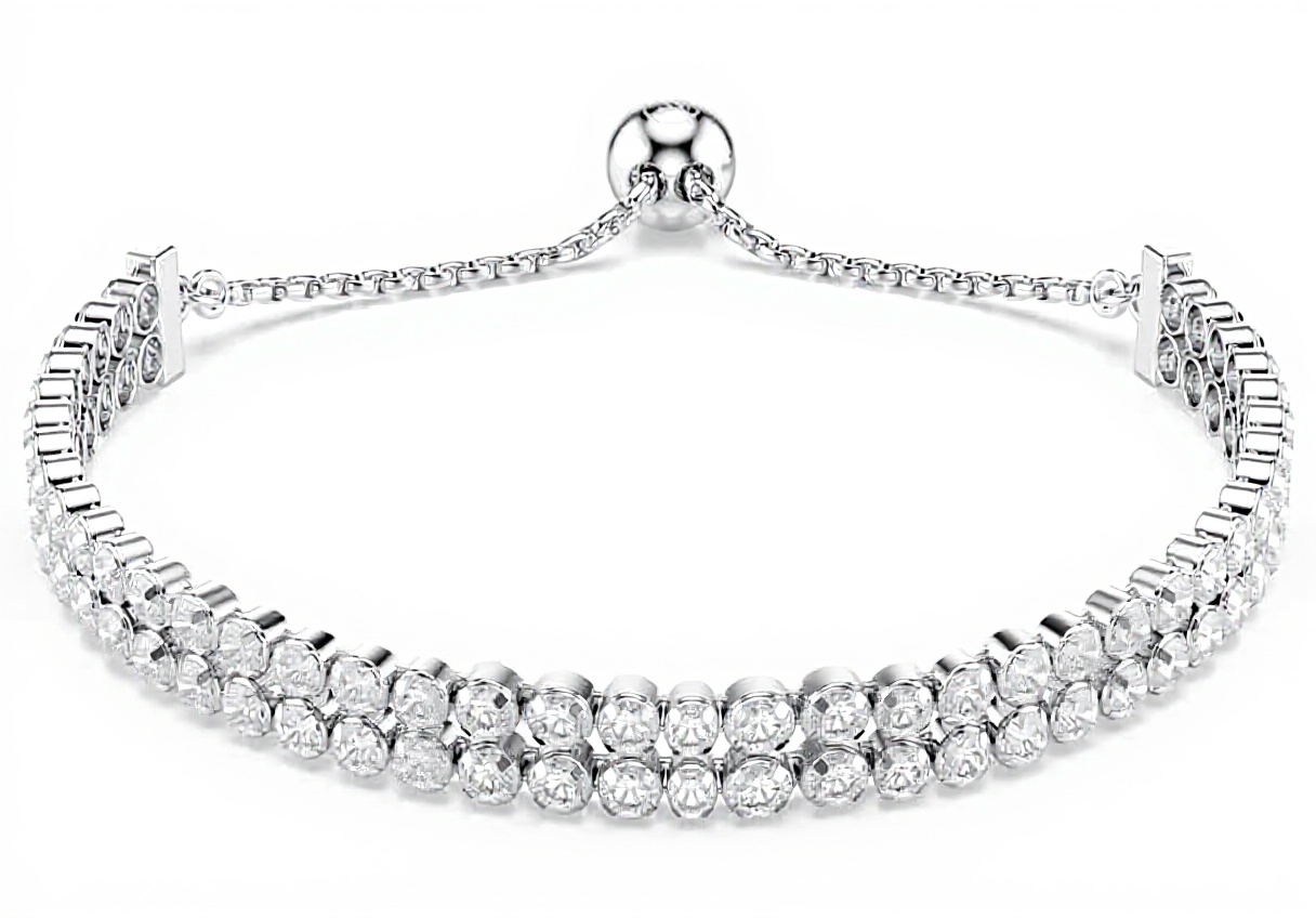 Il bracciale Tennis della collezione Matrix di Swarovski unisce eleganza e funzionalità con due delicati fili di Swarovski Zirconia bianca, taglio Round, incastonati in un design cupchain che avvolge il polso in modo raffinato. Realizzato in metallo placcato rodio, misura una lunghezza massima di 24 cm e un’ampiezza di 0,4 cm, ed è dotato di una chiusura a sfera scorrevole per una vestibilità personalizzata. Questo gioiello, consegnato nella confezione originale Swarovski, emana splendore da ogni angolazione, rendendolo un accessorio prezioso per chi cerca luminosità e stile.
