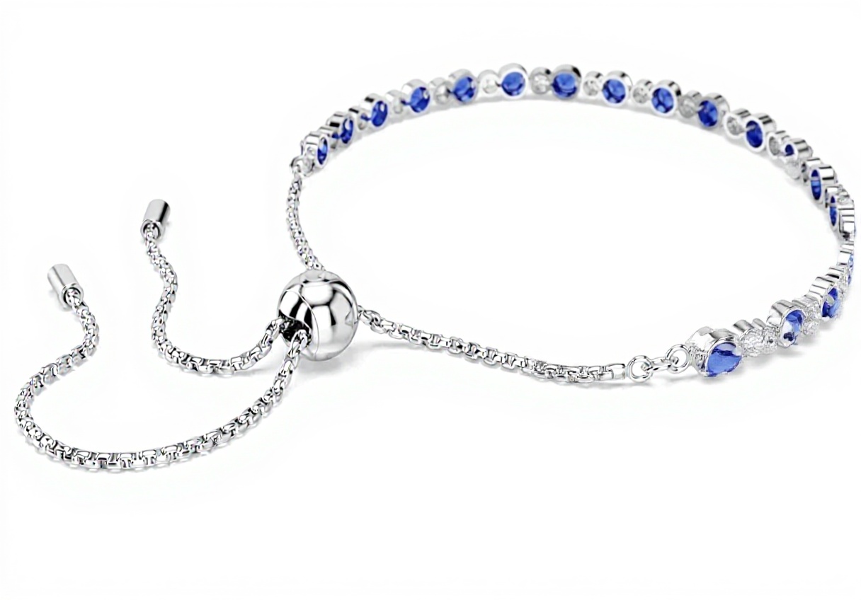 The Swarovski Matrix Tennis Bracelet combines transparent and blue Swarovski Zirconia with rhodium plating for timeless elegance. Its adjustable sliding closure ensures a comfortable fit for any wrist size, making it ideal for everyday outfits or evening looks. This refined piece is a dream gift for loved ones and pairs beautifully with other Matrix collection jewelry.