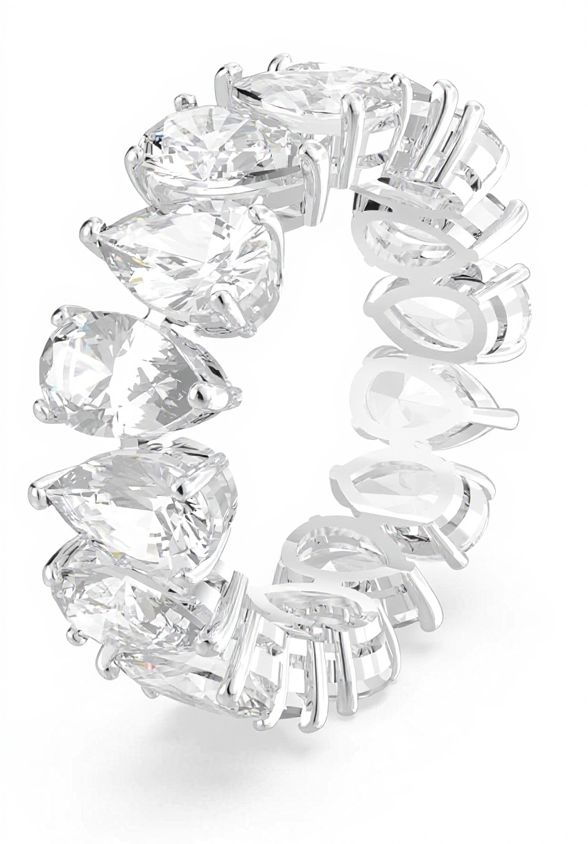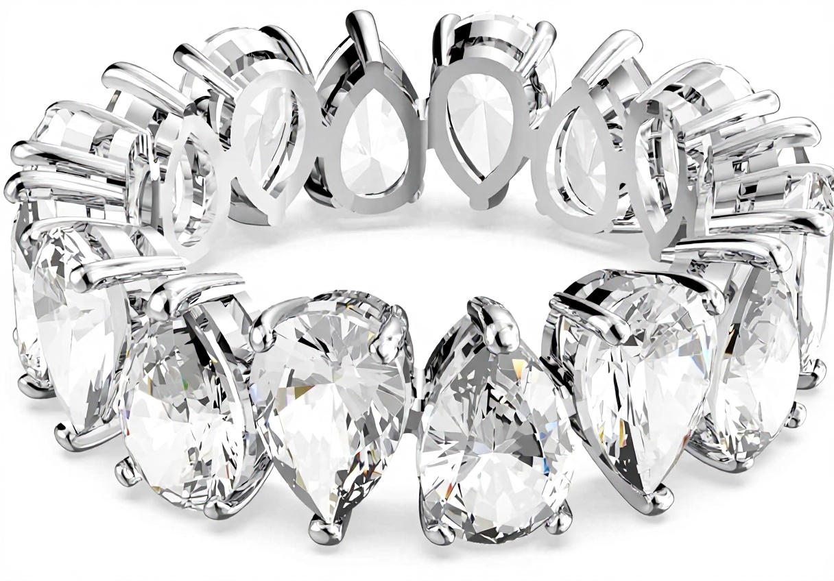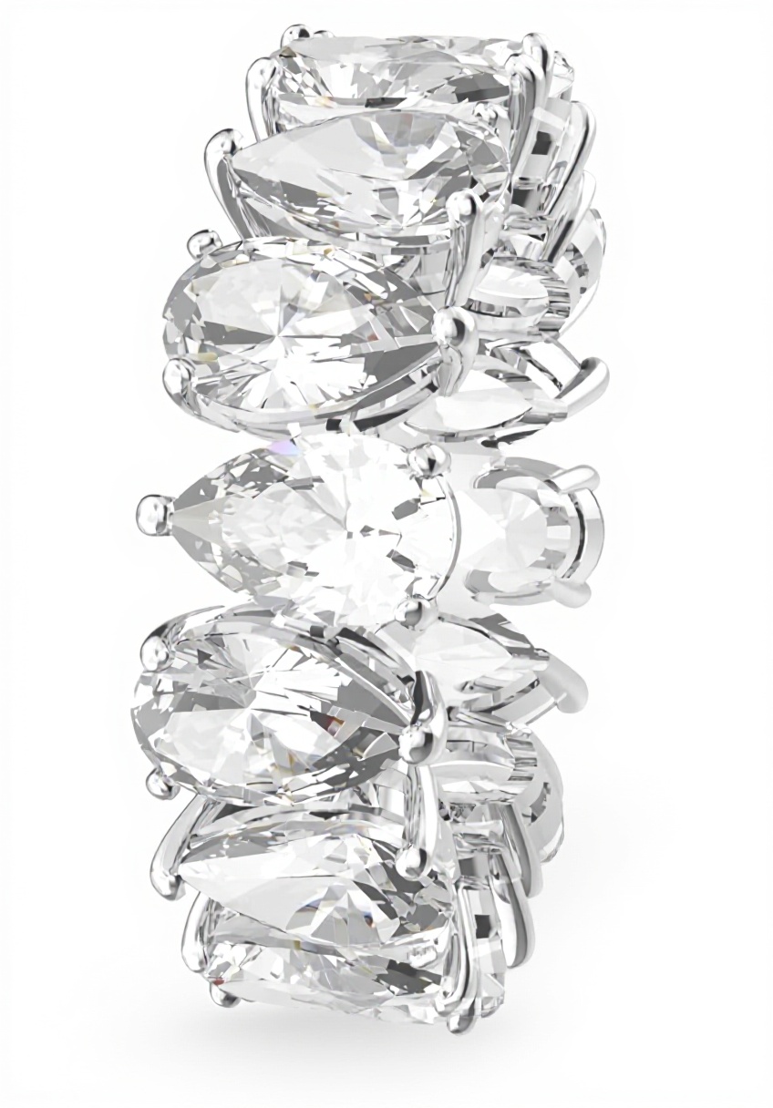 The Swarovski Matrix Vittore ring features brilliant white drop-shaped crystals arranged in a single row, offering exceptional light reflection and a modern design. Its elegant form makes it easy to pair with other jewelry for layered looks, perfect for enhancing outfits at special events or as a thoughtful gift. Crafted with precision-cut crystals and rhodium plating, it combines durability with timeless style.