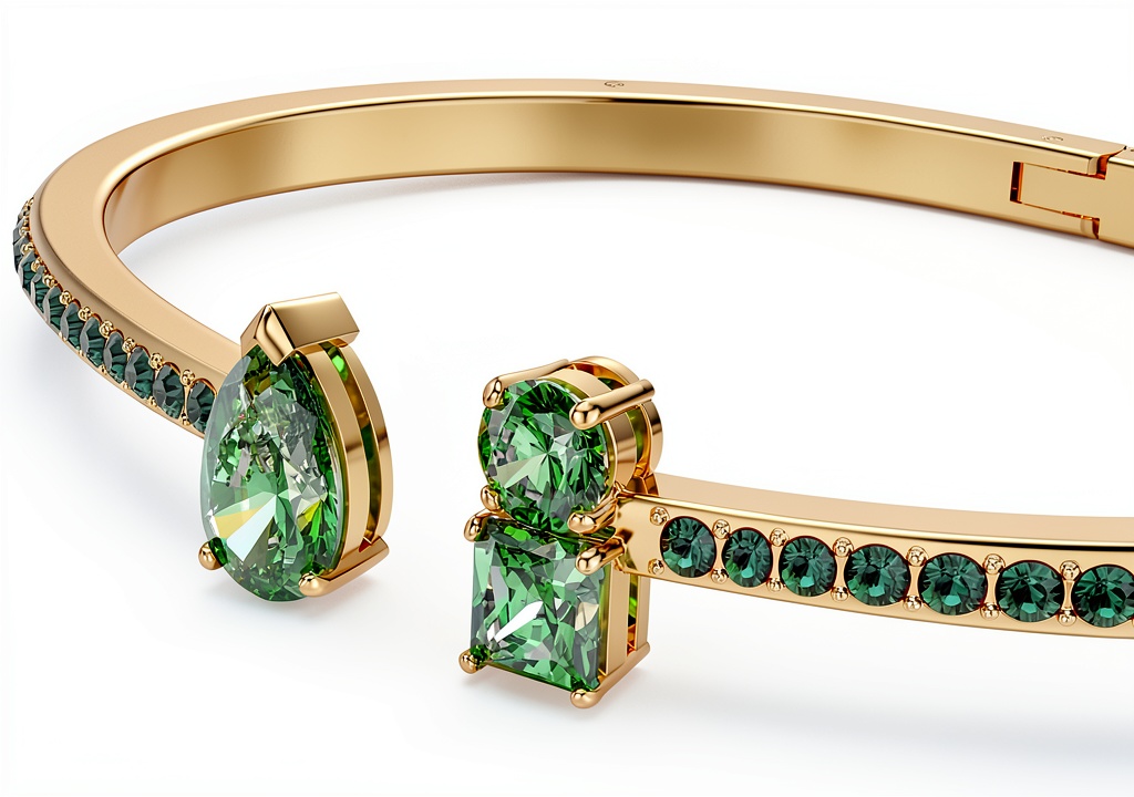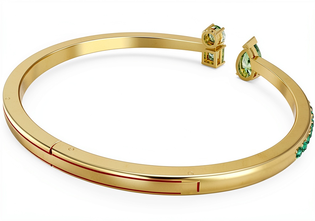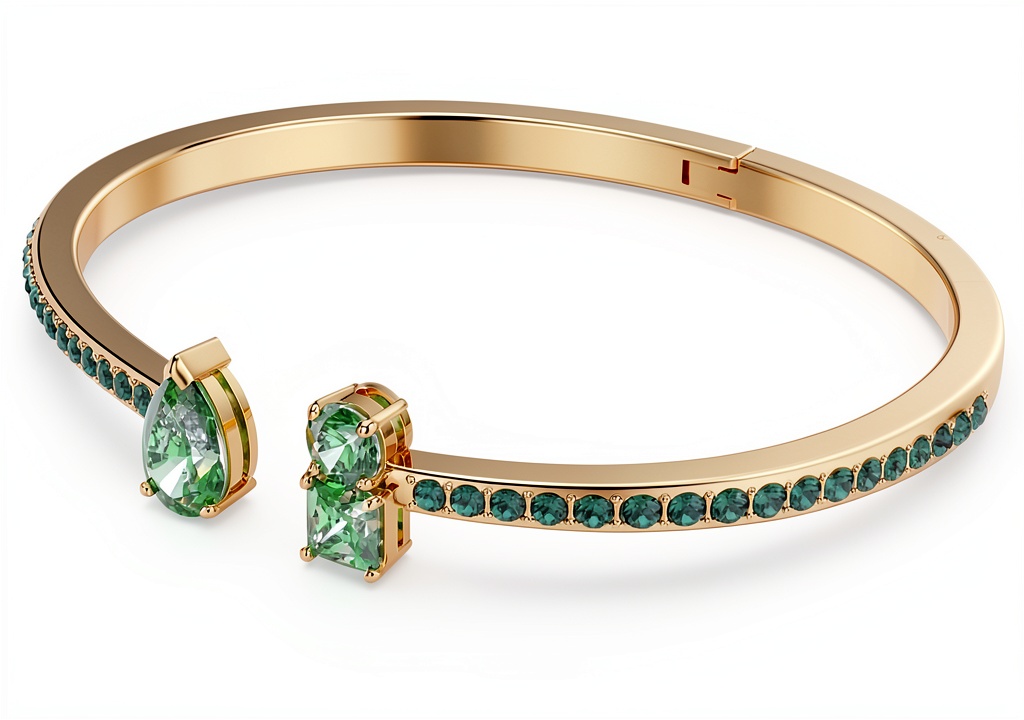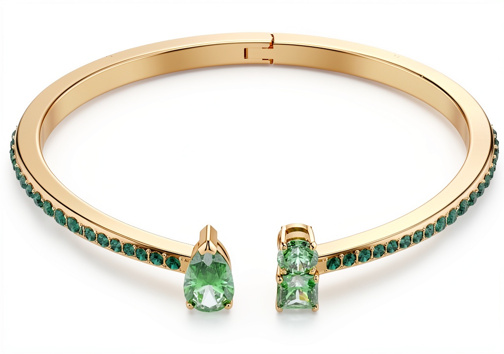 - Design rigido Matrix con cristalli verdi e placcatura in tonalità oro per un look sofisticato