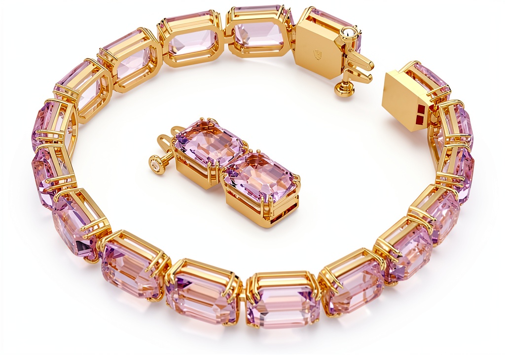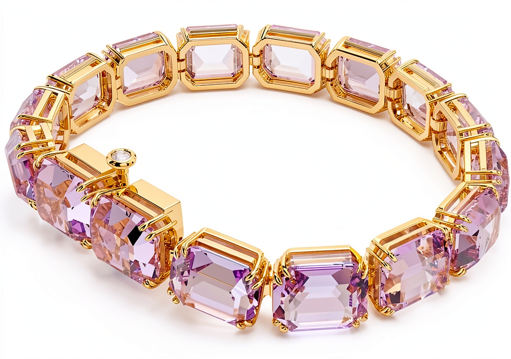 Il bracciale Swarovski Millenia incarna l’essenza della gioielleria contemporanea, unendo design minimalista e maestosa luminosità. Realizzato con cristalli Swarovski taglio Octagon in tonalità viola vivace e placcatura oro, questo gioiello offre una lunghezza regolabile da 17 a 19 cm e un’ampiezza di 0,8 cm. La finitura impeccabile e la confezione originale Swarovski inclusa garantiscono un’esperienza di lusso accessibile, ideale per chi cerca un accessorio che unisca eleganza e versatilità.
