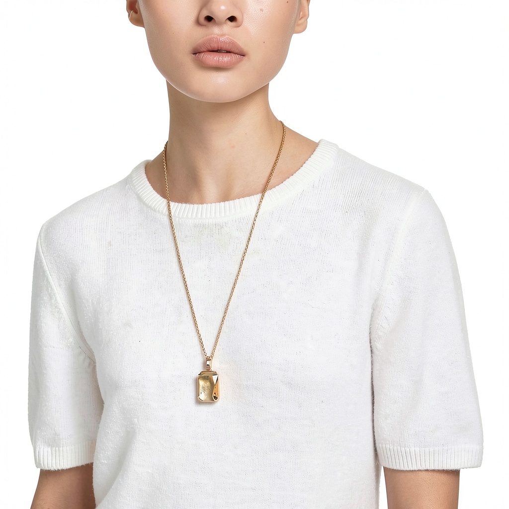 Il ciondolo misura 4,1 cm in lunghezza e 1,9 cm in larghezza, con una catena regolabile che va da 65 a 75 cm, offrendo flessibilità per adattarsi a diverse esigenze di stile.