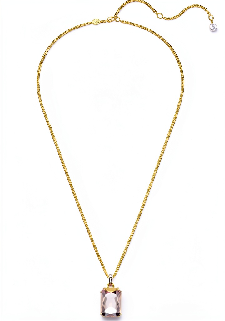 Il ciondolo è disponibile in placcatura tonalità oro caramello e placcato rodio bianco, offrendo opzioni per preferenze di stile diverse e abbinamenti con altri accessori.