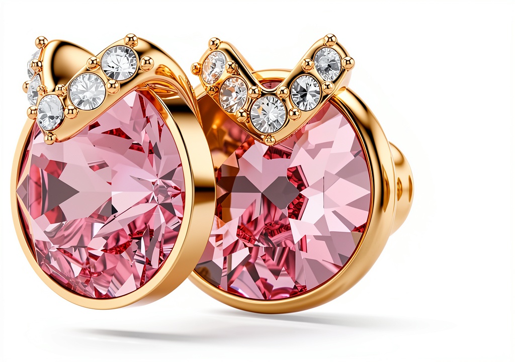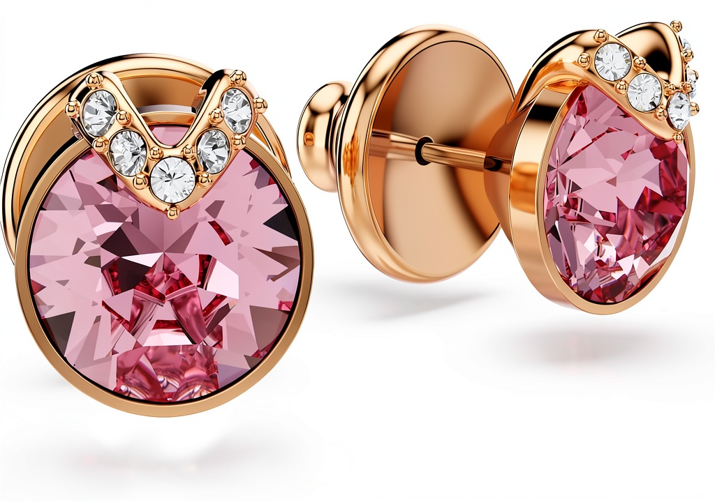 Gli orecchini sono realizzati con cristalli Swarovski di alta qualità e una montatura placcata in oro rosa, garantendo durabilità e una lucentezza eccezionale.