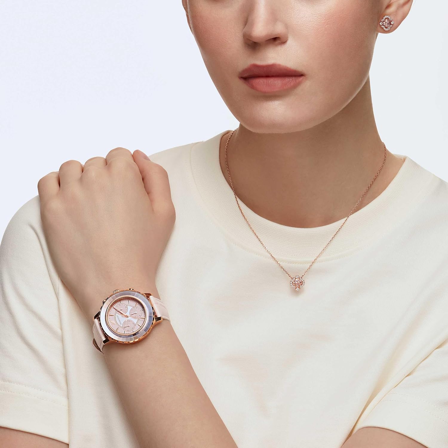 Il set Swarovski Sparkling Dance, parte della collezione Una, offre un design unico con una pietra trifoglio rosa che appare fluttuante all’interno della placcatura oro rosa. Include orecchini a buco e una collana, entrambi arricchiti da cristalli Clear Crystal in stile pavé per uno scintillio distintivo. Realizzato con materiali di alta qualità, questo set combina artigianalità raffinata e durabilità, con specifiche come placcatura oro rosa o rodio blu opzionale, e dimensioni bilanciate per un comfort ottimale.